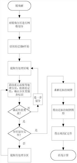 数ul(x)∈Vl写成一个加权和:这里的wk,i称为分层明细指数;通过定义ψk,i=φk,i,i∈Ik,又写成:得出了基于分层明细指数的一个近似控制律;综上就是利用上述的数学方法,先进行适时的描点,划分大致的子空间,然后再对那些尚没有足够近似化的区域进行再划分,这样连续不断的层层划分下去,直到所有的区域都被近似化;