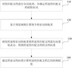 通过所述文档向量计算所述待匹配文档之间的相似度;所述基于预设规则计算每个特征词的权重,包括:基于所述待匹配文档的特征词将所述待匹配文档切分为多个文本段;根据每个文本段包含的特征词总数以及每个特征词在当前文本段出现的次数计算每个特征词的权重;