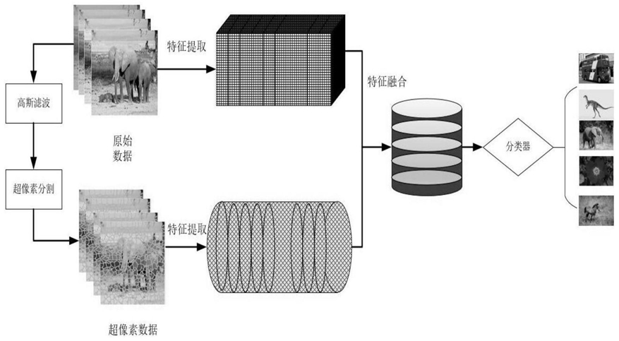 1.一种结合超像素显著性特征与HOG特征的图像分类算法,其特征在于,包括如下步骤:步骤1,将原始数据集进行HOG特征提取得到特征集A;