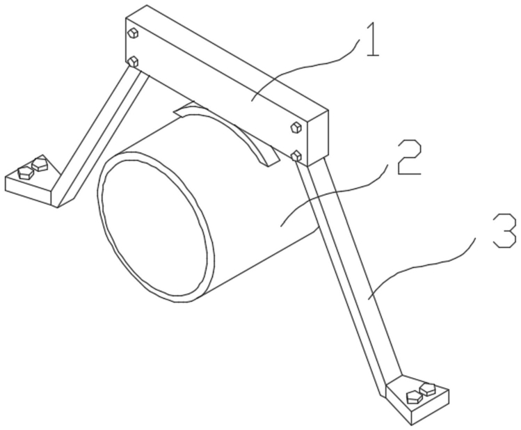 3.如权利要求1所述的一种自供电管道监测装置,其特征在于:所述托架为一个躺倒向下的L型板,所述托架L型短板处开有螺纹孔,所述托架螺纹孔经螺栓固定在固定支架上部,所述托架L型长板的上表面放置线圈骨架和永磁体。