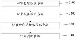 S4、评审判断步骤,用于根据所述评审标准对应的数据判断所述待评审的对象能否通过评审:是,则判断所述待评审对象属于预设类别;否,则判断所述待评审对象不属于预设类别;