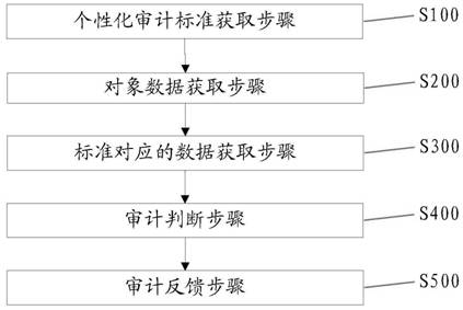 个性化审计标准对应的数据获取步骤,用于从所述待审计的对象的数据中获取所述个性化审计标准对应的数据;所述标准对应的数据获取步骤包括:数据筛选步骤,用于从所述待审计的对象的数据中筛选出所述个性化审计标准对应的数据作为第一数据;数据清洗步骤,用于从所述第一数据中提取与每一项标准对应的数据作为所述每一项标准对应的第二数据,包括:判断所述每一项标准对应的第二数据是否唯一:否,则判断所述每一项标准对应的多个第二数据之间是否一致:否,则保留所述多个第二数据中可信度最高的第二数据,删除所述多个第二数据中其他第二数据;审计判断步骤,用于判断所述个性化审计标准对应的数据是否符合所述个性化审计标准;