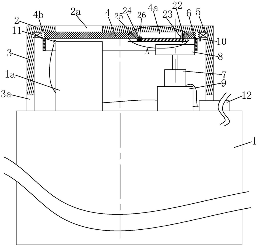 1.一种汽车油箱防盗装置,包括油箱(1),其中油箱的顶部设有加油管(1a),其特征在于:所述加油管(1a)上方设有一块固定防盗钢板(2),该固定防盗钢板与加油管(1a)的轴心线垂直;所述固定防盗钢板(2)上设有一个上下贯穿的油枪上过孔(2a),该油枪上过孔的位置与所述加油管(1a)顶部的油枪插入口相对,其孔径与该油枪插入口相适应;所述加油管(1a)外面罩有一个钢罩(3),该钢罩底部与所述油箱(1)顶部焊接固定,钢罩(3)顶部与固定防盗钢板(2)底面焊接固定,且钢罩(3)和固定防盗钢板(2)的轴心线在同一条直线上;所述加油管(1a)与固定防盗钢板(2)之间设有一块旋转防盗钢板(4),该旋转防盗钢板的顶面与固定防盗钢板(2)底面贴合,而旋转防盗钢板和固定防盗钢板(2)的轴心线在同一条直线上,且旋转防盗钢板(4)与钢罩(3)内壁之间通过轴承(5)相连;所述旋转防盗钢板(4)边缘开有一个上下贯穿的油枪下过孔(4a),该油枪下过孔的孔径与所述加油管(1a)的油枪插入口相适应,且油枪下过孔(4a)与油枪插入口分布在同一个圆周上;所述旋转防盗钢板(4)底面同轴固设有一个内齿圈(6),该内齿圈与电机(7)顶部的齿轮(8)相啮合,而电机(7)安装于垫块(9)顶部,垫块(9)固定在所述油箱(1)顶部;所述旋转防盗钢板(4)的外侧面固设有位置检测块(10),该位置检测块靠近所述油枪下过孔(4a),并与油枪下过孔(4a)在同一条直线上;所述加油管(1a)外壁的顶部安装有位置传感器(11),该位置传感器与所述位置检测块(10)相配合,用于检测油枪下过孔(4a)是否转动到油枪上过孔(2a)正下方,且传感器(11)的检测数据反馈给所述电机(7)的控制器,并用于控制电机(7)的工作状态。