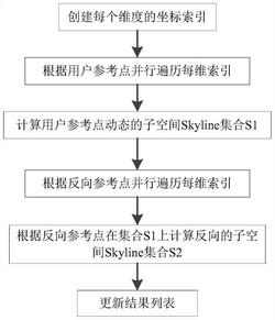 10.根据权利要求5所述的一种并行的相互子空间Skyline查询方法,其特征在于:所述的步骤3)中b)步的条件是:判断当前数据对象是否是反向参考点的反向子空间Skyline对象,条件要求用户参考点子空间中来自S1中的任意数据对象在任意维度相对于反向参考点都不“半控制”反向参考点的全局子空间Skyline对象;如果条件为真,则该动态子空间Skyline数据对象被设置标记,表明不是相互子空间的Skyline对象。