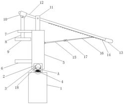 1.一种刀片磨床用夹持装置,包括底座(1),其特征在于,所述底座(1)顶部固定有两个支撑架(2),两个所述支撑架(2)之间中部转动安装有转轴(3),且转轴(3)两端延伸至支撑架(2)外部,所述转轴(3)两端转动安装有角度控制装置,两个所述支撑架(2)互相远离的侧面固定安装有扇形板(4),所述转轴(3)中部固定连接有矩形的支撑板(5),所述支撑板(5)侧面下部固定有固定夹板(6),所述支撑板(5)侧面远离固定夹板(6)的一端固定有限位板(7),所述限位板(7)中部活动连接有方形直杆(8),所述方形直杆(8)底部固定有移动夹板(9),所述方形直杆(8)远离移动夹板(9)的一端铰接有滑块(10),所述支撑板(5)顶部固定有支杆(11),所述支杆(11)远离支撑板(5)的一端转动连接有长杆(12),所述滑块(10)活动套接在长杆(12)靠近限位板(7)的一端,所述长杆(12)远离滑块(10)的一端固定有握把(13),所述长杆(12)为矩形结构,所述长杆(12)底部等距离设有倒刺状的固定齿(14),所述支撑板(5)远离固定夹板(6)的侧面中部通过铰接有第一连杆(15),所述第一连杆(15)远离铰链的一端通过转动轴转动连接有第二连杆(16),所述第一连杆(15)和第二连杆(16)的交接处活动套设有锁套(17)。