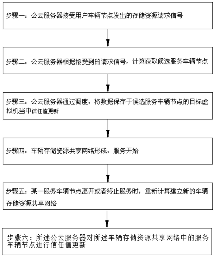 步骤六:所述公云服务器对所述车辆存储资源共享网络中的服务车辆节点进行信任值更新。