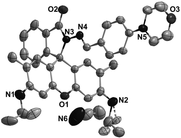 7.根据权利要求2所述的制备方法,其特征在于,所述缩合反应完成后还包括:对缩合反应液进行后处理,所述后处理包括以下步骤:将缩合反应液冷却至室温,使固体析出,过滤后对滤渣进行洗涤,得到具有式I所示结构的罗丹明类酰腙衍生物。