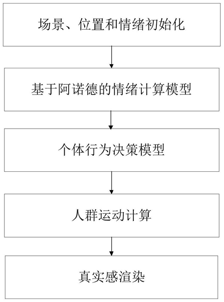 步骤5:将个体情绪和个体行为决策与人群运动计算相耦合;
