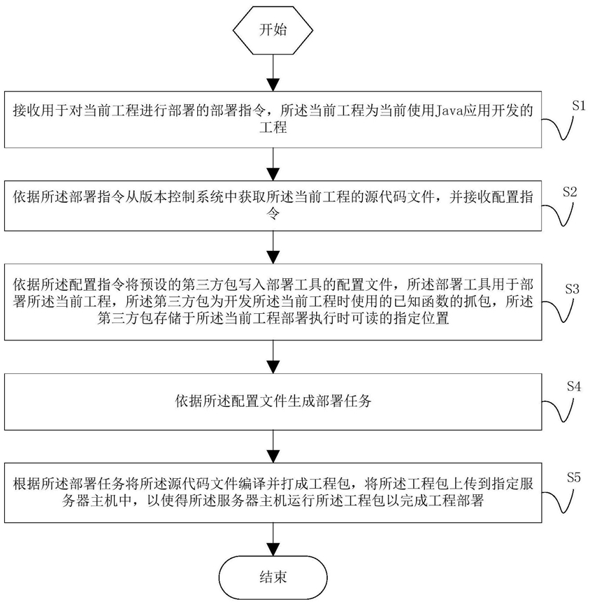 3.根据权利要求1所述的工程自动部署方法,其特征在于,所述依据所述配置指令将第三方包写入部署工具的配置文件的步骤,包括:依据所述配置指令读取所述部署工具中模板文件的内容以生成所述配置文件,所述模板文件为预设的可用作配置所述部署任务模板的文件,所述模板文件中设有用于指示所述第三方包当前位置的标识位;