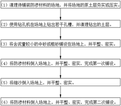 1.一种铺设防渗材料的方法,包括:(1)清理待铺装防渗材料的场地,并将场地的原土层夯实或压实;(2)使用钻孔机在场地上钻出若干孔槽,并清理钻出的土层;(3)将含泥量较小的中砂或粗砂铺设在场地上,并平整、密实;(4)将防渗材料倒入场地上;其特征在于,所述步骤(4)中的防渗材料在制备机内制备,该制备机包括机头和机座,机头内设有混合容器,混合容器内设有搅拌装置,具体为将50重量份的高岭土置于制备机的混合容器内,搅拌装置不搅拌,仅升温至110℃时,保温10分钟,将反应溶剂加入制备机的混合容器内,加热温度控制在155℃,搅拌10分钟,冷却至105℃,加入少量硬脂酸即可。