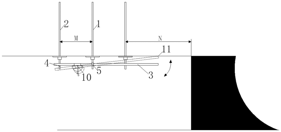 d.测量结束后,将测杆(3)后端重新放回后排焊接架(8)上,且每0.5h~8h测量测点(11),记录坡度仪上的角度θ2(θ3θ4……θn);