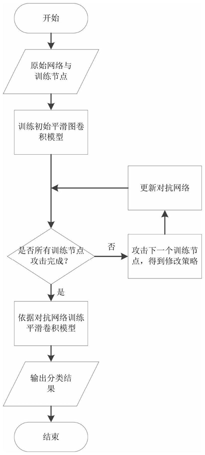 (3)利用得到的对抗网络与被标记类标的训练节点,重新训练初始分类模型,最终得到具有防御能力的节点分类模型。