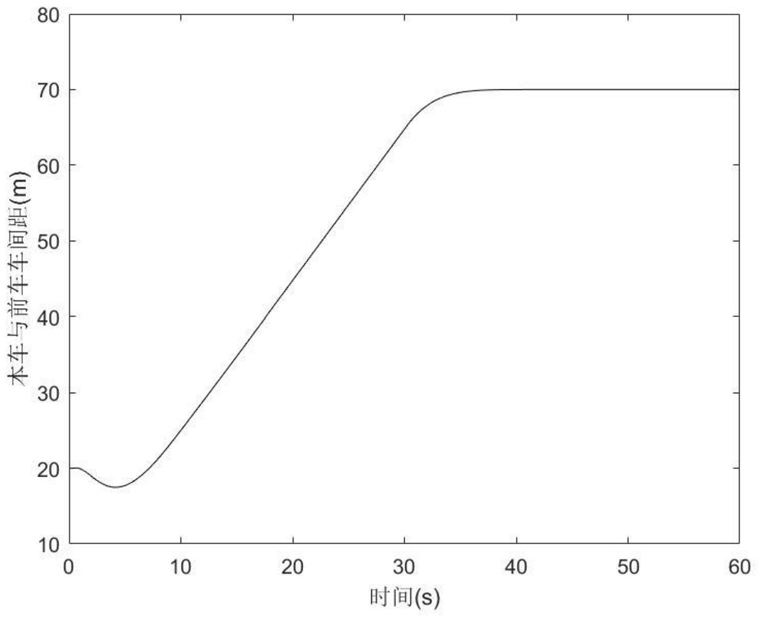 3)、通过车载传感器得到当前时刻前车与本车的间距误差、相对速度和本车加速度,通过无线信道传输得到当前时刻前车加速度,根据方程式(4)实时计算车辆自适应巡航系统安全车间距控制量u1(t),驱动本车跟踪前车运动状态;在下一个控制周期时,通过车载传感器得到前车与本车的间距误差、相对速度和本车加速度,通过无线信道传输得到前车加速度,如此周而复始,实现本车高稳定性和实时性的参数不确定自主车辆变速巡航系统鲁棒控制。