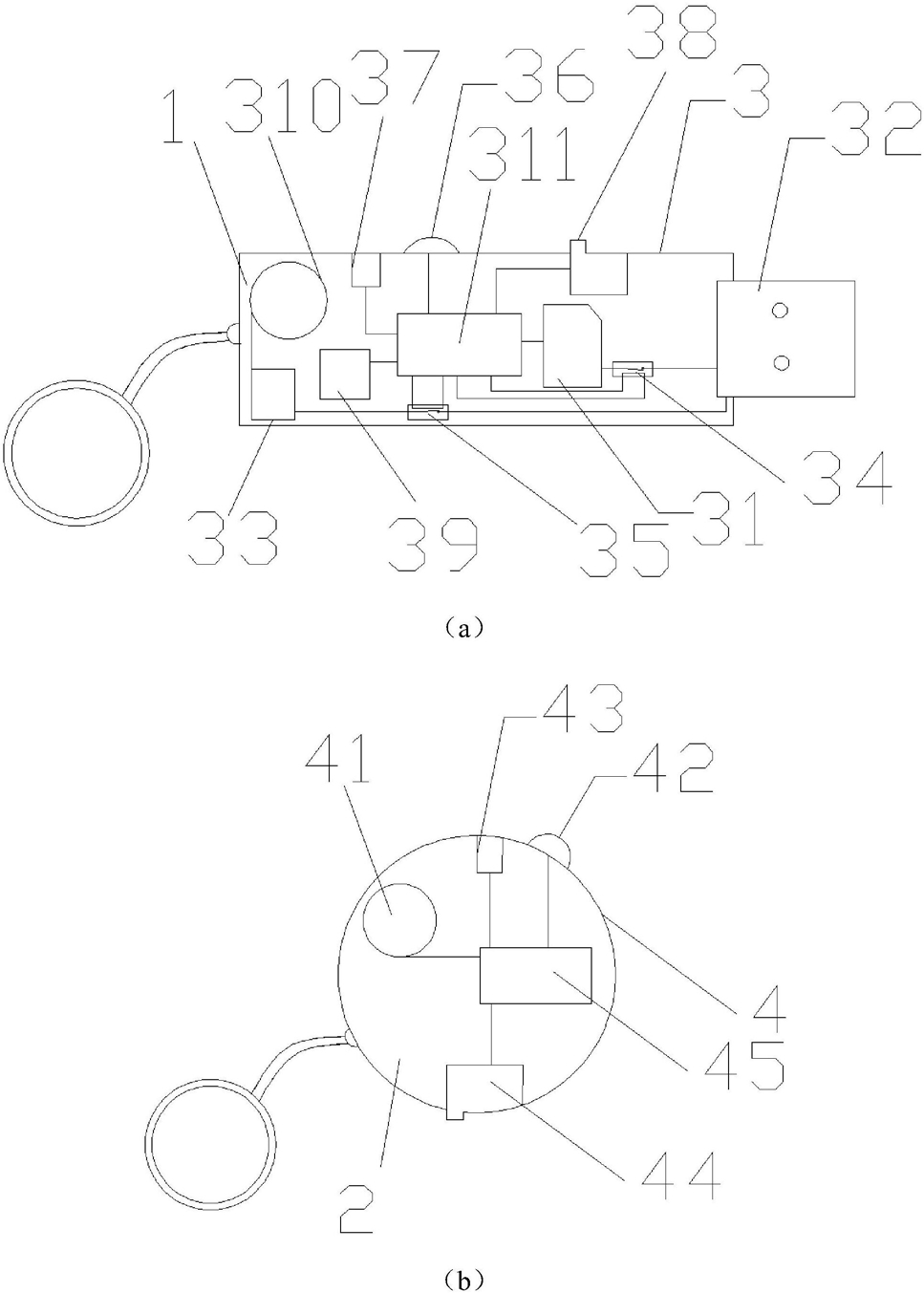 8.根据权利要求7所述的新型防丢失U盘,其特征在于,所述第二提醒装置包括第二LED灯(42)和第二蜂鸣器(43),所述第二LED灯(42)和第二蜂鸣器(43)均与第二微处理器(45)通信连接,且均与电池(41)电连接。