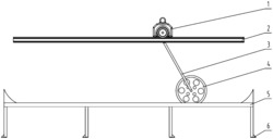 1.桁架往复牵引的自动茶叶滚捻机,包括揉捻平台,其特征在于:所述揉捻平台(5)底部固定安装有地脚底板(6),所述地脚底板(6)两侧固定安装有地脚螺栓将所述揉捻平台(5)固定在平坦地面;所述揉捻平台(5)上放置有宽度与之相匹配的带有中心轴孔和均布配重孔的揉捻滚子(4),所述中心轴孔用于活动连接牵引绳(3),所述均布配重孔用于增减配重块从而实现对揉捻滚子(4)的质量进行调整,以适应不同厚度叶片的揉捻工艺;所述揉捻平台(5)分为揉捻区和缓冲区两个区域,中间平坦部分为揉捻区,主要用于对茶叶片进行揉捻,两端的向上缓缓翘起的部分为缓冲区,主要对揉捻滚子(4)起到减速缓冲的作用;所述牵引绳(3)顶端固定连接有桁架往复式牵引装置(1),所述桁架往复式牵引装置(1)顶部固定连接有电机脚架,所述电机脚架两侧固定连接有对称的固定螺母,所述电机脚架顶部紧密连接有三相异步电机(9),所述三相异步电机(9)转轴活动连接有皮带轮组(11),所述皮带轮组将所述三相异步电机(9)的输出传递至所示桁架往复式牵引装置(1)内部的滚轮轴(15)上,所述滚轮轴(15)两端活动安装有轨道轮(7),所述轨道轮(7)分别配合连接在两侧的轨道(2)上,所述轨道固定在墙体上;所述三相异步电机(9)的一侧固定安装有控制器固定板,所述控制器固定板的前侧固定连接有异步电机控制器(8),所述异步电机控制器(8)利用正反向按钮和启停按钮实时控制茶叶揉捻过程。