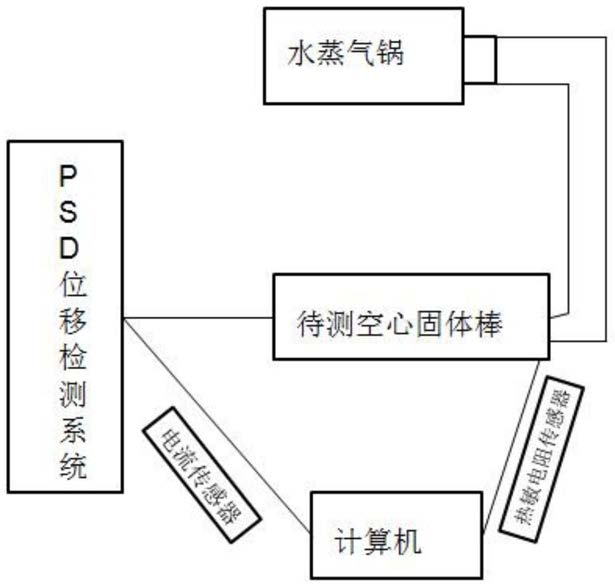 5.如权利要求3所述的利用PSD器件对固体线膨胀系数的测量实验装置,其特征在于,所述计算机用于接收热敏电阻传感器所输出的温度数据信号和电流传感器输出的电流信号,并处理温度数据信号和电流数据信号,分析,并通过计算机的显示装置显示待测空心固体棒的位移量。