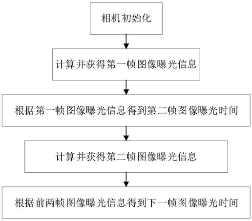 首先对车载相机标定和初始化,计算并获得第一帧图像的曝光信息,然后根据第一帧图像的曝光信息获得第二帧图像曝光时间,计算并获得第二帧图像的曝光信息,最后根据前两帧图像曝光信息得到下一帧图像的曝光时间。