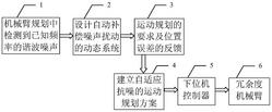 1.一种自适应抗噪的冗余度机械臂运动规划方法,其特征在于,利用内模原理,设计可自动生成用于补偿噪声扰动的信号的动态系统,该动态系统设计为:其中y(t)表示用于补偿谐波噪声扰动的信号,z(t)表示y(t)的时间导数且定义为表示z(t)的时间导数,f表示噪声的频率;基于该动态系统,结合机械臂运动规划的要求,引入位置误差的反馈,建立可自适应抗噪的运动规划方案,其为:其中 表示机械臂的关节速度;P(t)表示机械臂雅可比矩阵J(θ(t))的伪逆矩阵,θ(t)表示机械臂的关节角度;e(t)表示机械臂运动规划过程中的位置误差且定义为表示一个非线性映射函数,rd(t)表示机械臂末端执行器期望的运动轨迹; 表示rd(t)的时间导数,γ表示位置误差的反馈增益,t表示时间;下位机控制器根据规划方案的求解结果,驱动机械臂使其在存在谐波噪声的情况下仍可有效地完成给定的末端规划任务。