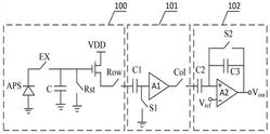 2.根据权利要求1所述的像素信息采集相关双采样读取电路,其特征在于所述像素单元由APS、开关EX、开关Rst、开关row、电容C和MOS管组成,其中:所述APS的一端接地,另一端与开关EX的一端相连;
