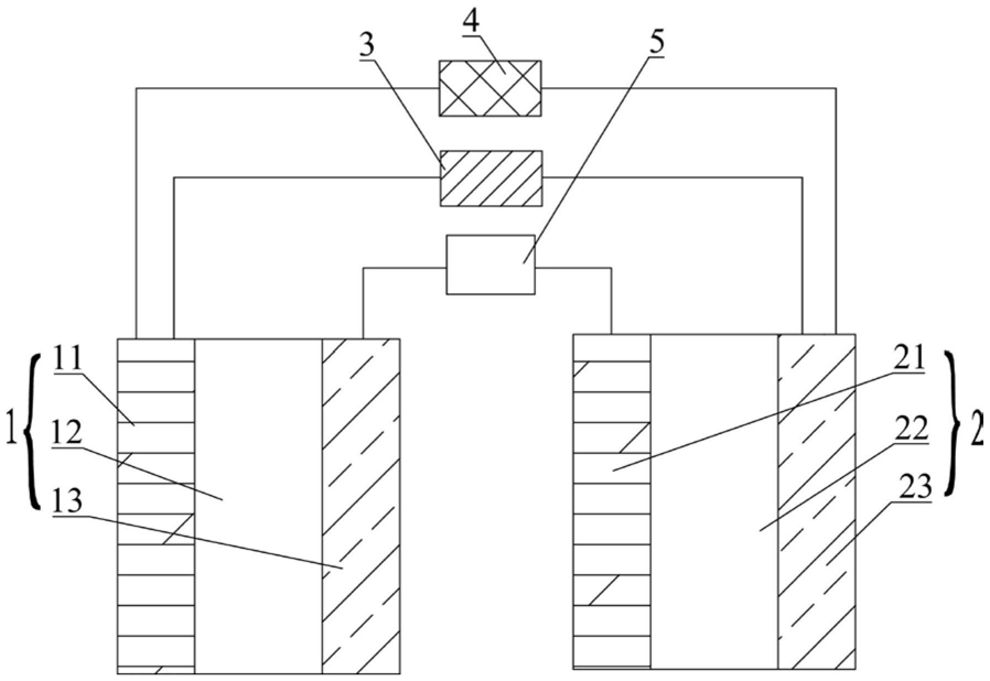 1.一种新型的太阳能电池-太阳能燃料联产循环系统,其特征在于:所述太阳能电池-太阳能燃料联产循环系统包括:电化学单元、用于将太阳能转化成电能以给所述电化学单元提供电能的光电单元和用于将太阳能转换成热能以调节所述电化学单元的温度的光热单元;所述电化学单元包括采用串联的方式连接的以熔融碱为电解体系的第一电化学单元和以熔融碳酸盐为电解体系的第二电化学单元;当所述太阳能电池-太阳能燃料联产循环系统工作时,所述第一电化学单元的电解体系中还包含三氧化铁和水,所述第二电化学单元的电解体系中还包含二氧化碳。2.根据权利要求1所述的太阳能电池-太阳能燃料联产循环系统,其特征在于:所述太阳能电池-太阳能燃料联产循环系统还包括负载装置;所述负载装置与所述光电单元以并联的方式连接在所述第一电化学单元的阳极和所述第二电化学单元的阴极之间。3.根据权利要求1所述的太阳能电池-太阳能燃料联产循环系统,其特征在于:当所述光电单元和所述电化学单元之间形成电流回路时,所述太阳能电池-太阳能燃料联产循环系统充电并产出太阳能燃料。4.根据权利要求2所述的太阳能电池-太阳能燃料联产循环系统,其特征在于:当所述负载装置和所述电化学单元之间形成电流回路时,所述太阳能电池-太阳能燃料联产循环系统放电以产出电能。5.根据权利要求1所述的太阳能电池-太阳能燃料联产循环系统,其特征在于:当所述光电单元和所述电化学单元之间形成电流回路时,所述第一电化学单元的电解体系中还包含强氧化剂。6.根据权利要求1至5任一项所述的太阳能电池-太阳能燃料联产循环系统,其特征在于:所述熔融碱选自由熔融氢氧化钠、熔融氢氧化钾、熔融氢氧化锂、熔融氢氧化铯、熔融氢氧化镁、熔融氢氧化锶、熔融氢氧化银和熔融氢氧化钡组成的组。7.根据权利要求1至5任一项所述的太阳能电池-太阳能燃料联产循环系统,其特征在于:所述熔融碳酸盐选自由熔融碳酸锂、熔融碳酸钠和熔融碳酸钾组成的组。8.根据权利要求1至5任一项所述的太阳能电池-太阳能燃料联产循环系统,其特征在于:所述第一电化学单元的阳极和阴极采用泡沫镍材料制成;和/或所述第二电化学单元的阳极和阴极采用泡沫镍材料制成。9.根据权利要求1至5任一项所述的太阳能电池-太阳能燃料联产循环系统,其特征在于:所述光热单元为太阳能聚焦高温系统;和/或所述光电单元为多级硅基太阳能电池、光电池或多带隙太阳能电池。10.根据权利要求1至5任一项所述的太阳能电池-太阳能燃料联产循环系统,其特征在于:所述光热单元调节所述第一电化学单元的温度为200~350℃;和/或所述光热单元调节所述第二电化学单元的温度为500~700℃。