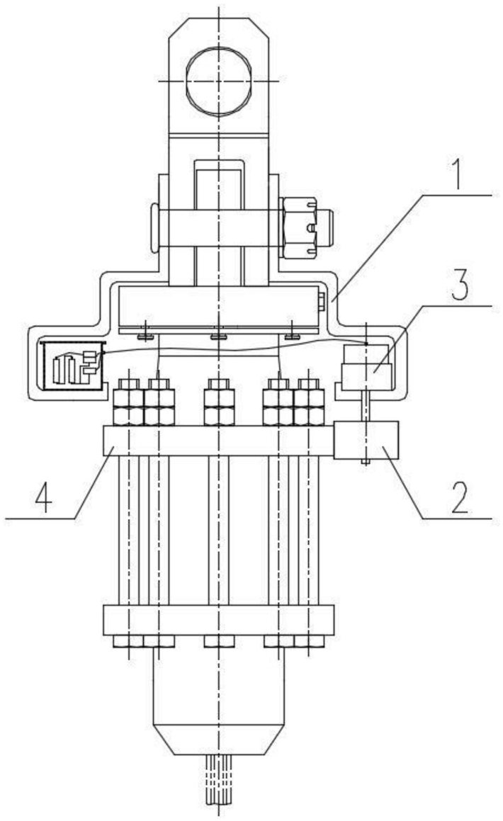 4.一种摩擦式矿井提升机圆尾绳旋转监测装置的控制方法,其特征在于,提升容器带动圆尾绳悬挂装置及圆尾绳的绳端同步升降的同时带动轴承套(4)绕其中轴线旋转,轴承套(4)带动压接检测辊轮(2)旋转,旋转监测部件(3)对压接检测辊轮(2)的旋转量进行检测并向控制器反馈检测数据,控制器将反馈的检测数据与内置的旋转标准数据进行比对;若反馈的检测数据与旋转标准数据的偏差位于设定范围内,则持续检测;若反馈的检测数据与旋转标准数据的偏差位于设定范围外,则控制器启动报警控制回路,报警模块通过无线收发模块向摩擦式矿井提升机系统的地面电控主机发出报警信号,地面电控主机根据接收到的报警信号控制摩擦式矿井提升机进行安全停机动作。