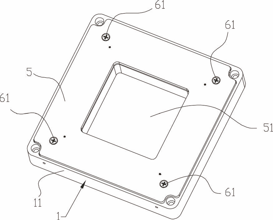1.两转动一平动大行程无耦合大中空并联压电微动平台,包括用作承载物体的动台面(5),所述的动台面(5)间隙设有底座(1),其特征是:所述的底座(1)设有呈矩形顺次分布的第一驱动单元(21)、第二驱动单元(22)、第三驱动单元(23)和第四驱动单元(24);所述的第一驱动单元(21)、第二驱动单元(22)、第三驱动单元(23)和第四驱动单元(24)独立伸缩且设于所述的动台面(5)下,所述的第一驱动单元(21)与第二驱动单元(22)之间设有正对所述的动台面(5)的第一位移传感器(31),所述的第三驱动单元(23)与第四驱动单元(24)之间设有正对所述的动台面(5)的第二位移传感器(32),所述的第一驱动单元(21)与第四驱动单元(24)之间设有正对所述的动台面(5)的第三位移传感器(33)。