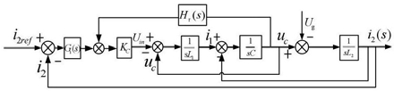ωc为高通滤波环节的截止角频率,Kr为小于1的常数,ωc为常数,其值与滤波器的谐振角频率ωr相等, 其中Lgi为系统的电网内阻,L1为逆变器侧电感、电容C和网侧电感L2为电网侧电感成LCL滤波器;