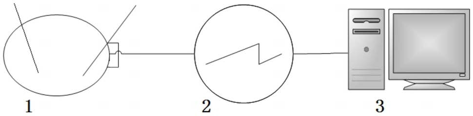 计算机通过软件控制所述程序控制电压信号源,产生一系列的电压信号,施加在薄膜样品上,电学测试装置测量薄膜样品在这一系列的电压信号下的漏电流值,并回传至计算机,由计算机存储这些测量值,并在屏幕上显示电介质薄膜的漏电流特性即电压-电流特性曲线。