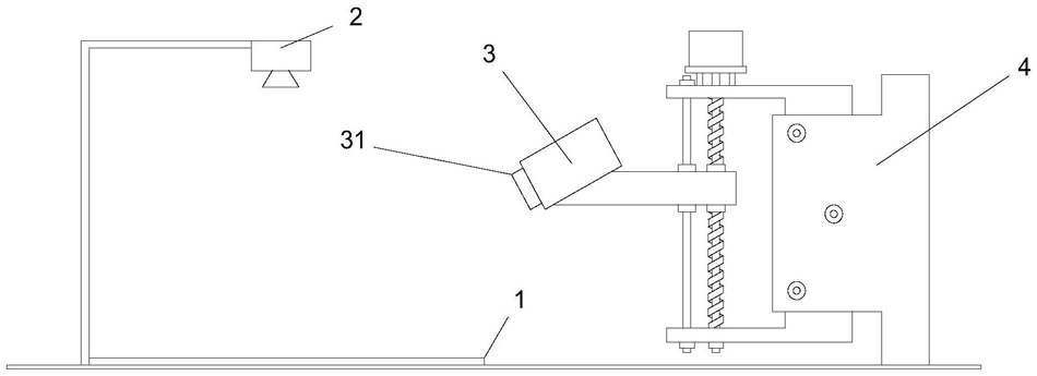 激光器固定架的中间部分在竖直方向是中空的,上、下方均具有固定壁,竖直丝杆位于中空的部分,上、下端分别穿过上、下方的具有固定壁的固定孔,竖直丝杆在所述中空部分对应处上固定一滑台,滑台上固定所述激光器,水平丝杆的一端穿过固定孔后连接第一电机的转动轴,第一电机用于在转动时带动竖直丝杆在固定孔内旋进或旋出,从而带动激光器固定架在竖直方向上移动。