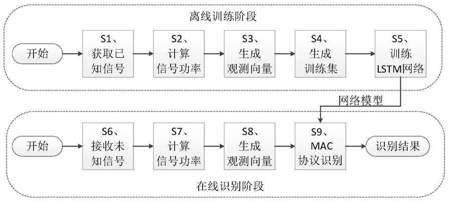 S9、MAC协议识别:将未知信号的观测向量送入S5训练好的网络模型中,进行识别,得到识别结果。