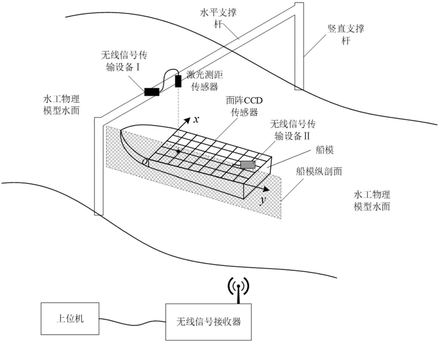 1.一种水工物理模型试验自航船模纵剖面下沉量的测量装置,其特征在于:包括自航船模、面阵CCD、激光测距传感器、通信模块和上位机;