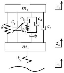 1.一种基于ADD正实网络优化的车辆ISD悬架二阶理想模型,其特征在于,包括:步骤(1):建立ISD悬架四分之一模型: