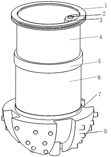 3.一种利用权利要求1-2之一所述的区域谐振式钻井装置的钻井方法,其特征是:通过四个谐振钻头(11)同时工作,在主体钻头(8)的底端组成一个中心谐振区域,向谐振频率控制中心(13)输入地层各层段岩石种类和谐振频率,钻井时,通过谐振频率控制中心(13)将岩石固有频率的信号传递给激励谐振台1号(15)和激励谐振台2号(16),激励谐振台1号(15)和激励谐振台2号(16)输出相同的频率给四个谐振钻头(11),四个谐振钻头(11)谐振冲击地层,岩石出现裂缝,紧接着主体钻头(8)旋转钻进一定深度,然后主体钻头(8)停止钻进,再由四个谐振钻头(11)重新造缝,循环往复,四个谐振钻头(11)与主体钻头(8)交替工作,不断钻进。