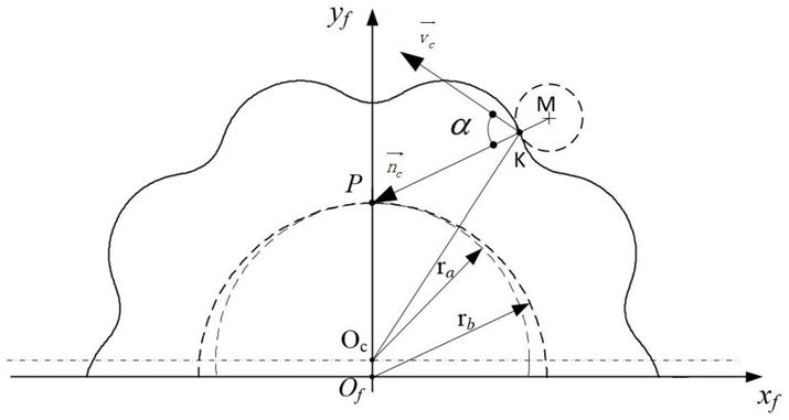 为啮合点切矢,其中xc为摆线轮齿廓横坐