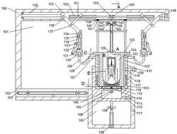 4.如权利要求1所述的一种天然原料制备染料的装置,所述转动组件包括固设于所述制备腔上端壁的定块,所述定块内固设有开口朝下的定内腔,所述定内腔上端壁固设有与所述制备腔下端壁固设的固杆,所述定块外表面固设有固定齿轮,所述固杆外表面转动设置有与所述定块下端面滑动连接的转动块,所述转动块上端面内固设有转向电机,所述转向电机输出轴固设有与所述固定齿轮啮合连接的转动齿轮,所述转动块下端面固设有碾压电机和导向杆,所述碾压电机输出轴螺纹设置有与所述导向杆滑动连接的碾压箱。