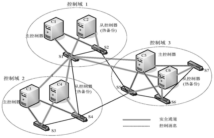 步骤1、获取SDN网络结构并利用无向图描述,建立软件定义网络结构抽象模型,抽象模型G(S,E),网络中的交换机集合用S表示,交换机间连接链路集合用E表示,将控制器故障类型设定为同一控制域内Master控制器与Slave控制器均发生故障的情景;