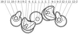 1.一种椭圆—组合式凹凸共轭齿轮行星轮系取苗机构,包括中心轴、行星架、中心椭圆齿轮、第一中间椭圆齿轮、第二中间椭圆齿轮、第一中间轴、第二中间轴、第一行星轴、第二行星轴和取苗臂,其特征在于:还包括第一中间组合式齿轮、第二中间组合式齿轮、第一行星组合式齿轮和第二行星组合式齿轮;所述的中心轴与行星架固连;所述的中心椭圆齿轮与机架固连;第一中间轴和第二中间轴对称设置在中心轴两侧,且均通过轴承支承在行星架上;第一中间椭圆齿轮与第一中间组合式齿轮的第一椭圆不完全齿轮及第一内凹齿轮通过两个圆柱销固定,且第一中间椭圆齿轮固定在第一中间轴上;第二中间椭圆齿轮与第二中间组合式齿轮的第二椭圆不完全齿轮及第二内凹齿轮通过两个圆柱销固定,且第二中间椭圆齿轮固定在第二中间轴上;第一行星轴和第二行星轴对称设置在行星架两端,且均通过轴承支承在行星架上;第一行星组合式齿轮的第三椭圆不完全齿轮和第一外凸齿轮均与第一行星轴通过花键连接;第二行星组合式齿轮的第四椭圆不完全齿轮和第二外凸齿轮均与第二行星轴通过花键连接;第一行星轴和第二行星轴伸出行星架外的一端分别与一个取苗臂的壳体固连;两个取苗臂的推苗凸轮均与行星架固定;所述中心椭圆齿轮的两侧分别与第一中间椭圆齿轮和第二中间椭圆齿轮通过齿轮副连接;当第一中间组合式齿轮的第一椭圆不完全齿轮与第一行星组合式齿轮的第三椭圆不完全齿轮啮合时,第一中间组合式齿轮的第一内凹齿轮与第一行星组合式齿轮的第一外凸齿轮分离;当第一中间组合式齿轮的第一椭圆不完全齿轮与第一行星组合式齿轮的第三椭圆不完全齿轮分离时,第一中间组合式齿轮的第一内凹齿轮与第一行星组合式齿轮的第一外凸齿轮啮合;当第二中间组合式齿轮的第二椭圆不完全齿轮与第二行星组合式齿轮的第四椭圆不完全齿轮啮合时,第二中间组合式齿轮的第二内凹齿轮与第二行星组合式齿轮的第二外凸齿轮分离;当第二中间组合式齿轮的第二椭圆不完全齿轮与第二行星组合式齿轮的第四椭圆不完全齿轮分离时,第二中间组合式齿轮的第二内凹齿轮与第二行星组合式齿轮的第二外凸齿轮啮合;