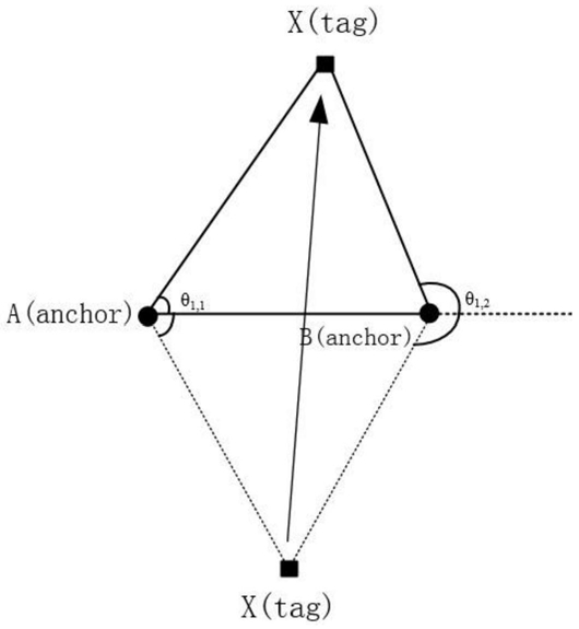 S5、当之前位于定位标签相邻的上方基站θi,j的值由正变为负时,定位标签则终止与之前位于标签下方基站的通信;