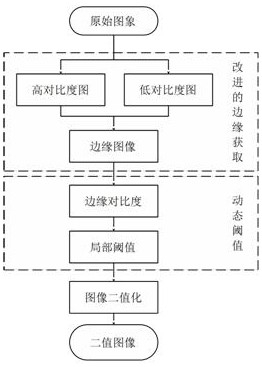 S2、将步骤S1输出的初步图形进行均值滤波获取计算:采用Sauvola算法对灰度化图像进行阈值分割,如式(1)所示:式(1)中,D(x,y)代表像素点的对比度值,基于式(1)计算得到;