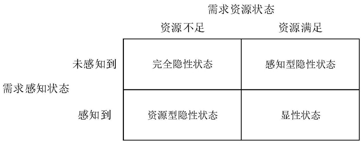 5.根据权利要求4所述的需求识别方法,其特征在于,步骤③的具体实现过程包括:判断群体需求的感知状态识别信息取值是否为0,同时群体需求的资源状态识别信息取值是否不小于0,如果二者同时满足,则与之对应的群体需求属于可行性需求集合F,并给出其状态向量Z=[1,0,0,0];如若二者不能同时满足,则与之对应的群体需求不属于可行性需求集合。