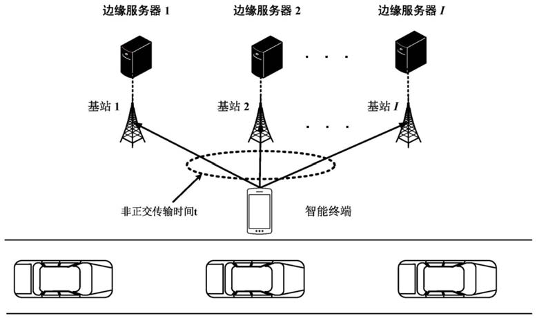 在保证智能终端数据需求的情况下最小化智能终端完成所有计算工作量所需要的总延迟和边缘计算服务器所消耗的计算资源代价的问题描述为如下所示的优化问题SCM:约束条件:0≤t≤dove≤Tmax待优化变量:t,dove,