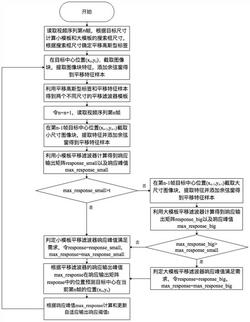 确定平移滤波器模板模块:在目标中心位置(xn,yn),根据搜索框大小截取图像块patch_small_for_train_n和patch_big_for_train_n,其中n表示帧数;分别提取图像块特征,添加余弦窗得到平移特征样本xf_small_for_train_n、xf_big_for_train_n,利用平移高斯型标签和平移特征样本得到两个不同尺寸的平移滤波器模板,用α_small、α_big表示;