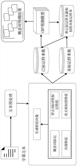 其中,基于条件随机场的半监督学习框架进行训练的具体过程如下:s3.1.使用训练集对条件随机场模型进行训练,得到初始的概念词预测模型;
