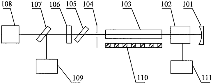 周期性重复电光调Q晶体(14)加压和退压状态,得到重频2倍于电光调Q频率的高重频单纵模脉冲激光输出序列。