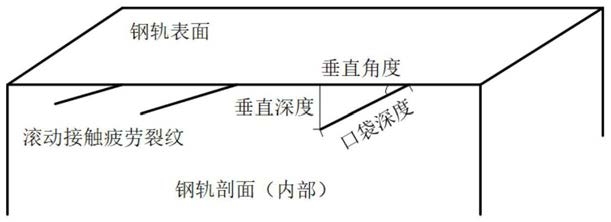 1.一种无损检测钢轨滚动接触疲劳裂纹扩展垂直深度的方法,其特征在于,该方法包括如下步骤:(1)交流电磁场测量探头沿裂纹表面长度进行扫描,取得Bx和Bz信号,确定裂纹的口袋深度以及表面长度;