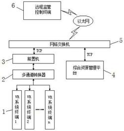 7.根据权利要求1所述的一种沉浸式全景虚拟现实系统,其特征在于:所述远程监管控制终端(6)包括信息收集模块(601)、信息处理模块(602)和数据库(603),所述信息收集模块(601)和数据库(603)分别与信息处理模块(602)电性连接,经信息收集模块(601)接收来自远端指令信息后传输给信息处理模块(602),通过信息处理模块(602)对指令信息进行处理并,当需要进行远程资源交互时通过综合资源管理平台(4)进行相应信息提取,提取后的信息再传输给该使用者的VR系统终端(1)进行呈现,该使用者的需求信息、使用数据及综合资源管理平台(4)数据储存于由数据库(603)。