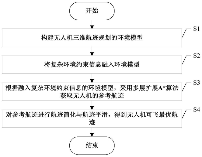S3、根据融入复杂环境约束信息的环境模型,采用多层扩展A*算法获取无人机的参考航迹;