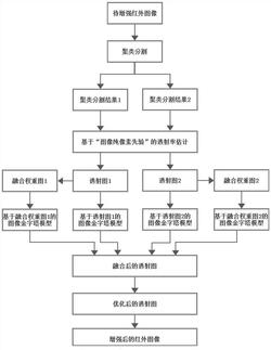 3.根据权利要求1所述的一种基于透射图融合的红外图像增强方法,其特征是,S2中,利用图像纯像素先验在不同聚类结果的各子区域内分别进行独立的透射率估计,具体过程如下:式中:ξ(·)是纯像素比例统计函数,用于对增强后的图像进行纯像素比例统计;对I1和I2的各子区域集分别进行独立的透射率估计,便可得到I1和I2对应的透射图t1和t2。