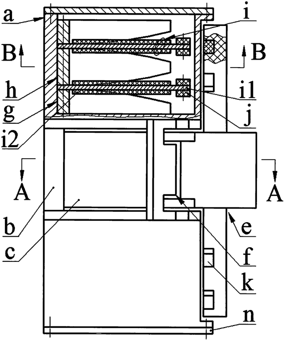 1.一种用于河流监测系统的压电俘能器,其特征在于:框架的主梁两端都设有副梁,副梁外侧都设有空腔,空腔的侧壁端部装有端盖;两个侧框的侧横梁和至少一个中框的中横梁安装在空腔内靠近副梁的侧壁上,压电振子的一端压接在侧横梁和中横梁之间、另一端安装有副磁铁,压电振子由基板和压电片粘接而成;侧横梁两端设有侧耳板,中横梁两端设有中耳板,侧耳板的一侧和中耳板的两侧都设有限形面,限形面为圆弧面,限形面和侧横梁及中横梁上与基板相接触的表面相切;同一侧框上两个侧耳板的间距与同一中框上两个中耳板的间距相等且比压电片宽、比基板窄;耦合器的钝体两端都设有侧耳,两个侧耳经横板连接,横板上装有板簧,板簧的另一端固定在主梁上;钝体两端的外侧都设有侧臂,侧臂上靠近侧耳的一侧嵌有主磁铁,主磁铁和压电振子的数量相等,两个侧臂上的主磁铁对称安装且都与钝体轴线形成相同的夹角,主副磁铁相吸;挡板的弧形板两端都设有连接耳和豁口,同一挡板的两个连接耳分别装在两个副梁上,两个挡板的弧形板经钝体和横板之间的缝隙穿过后相互顶靠在一起,钝体的侧耳置于挡板的豁口内,弧形板的凸面靠近钝体安装;