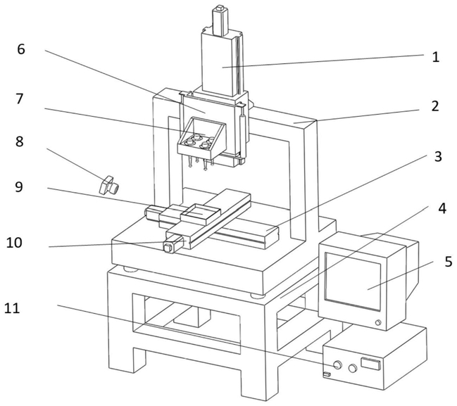 3.如权利要求1所述的一种旋转超声加工结合磁力研磨加工微半球凹模阵列的方法,其特征在于,使用可拆卸式旋转工具头,通过旋转装置中的线圈绕组带动变幅杆在水平基面上转动,同时轴向限位装置稳定旋转装置的变幅杆在竖直方向上不产生除超声振动外的抖动。
